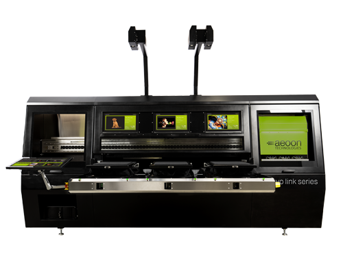 It connects complex front-end interfaces with demanding back-end processes, can be linked with a wide variety of applications and uses the most modern RIP software. The Kyo Link Series allows effortless connections to a homepage, online shop and API interfaces. Further highlights are an integrated projector, scanner and heat press with which R2P materials can be pre-pressed. Of course, in addition to the smooth human-machine interaction, as with all aeoon printers, you achieve unrivalled production capacities with the highest quality print results.
